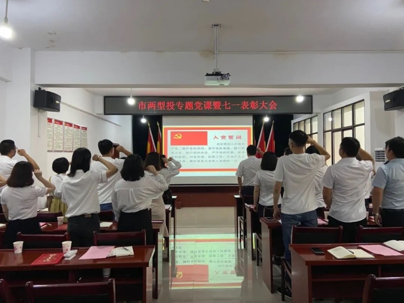 會(huì)上,發(fā)展了新黨員,表彰了一批優(yōu)秀黨員。全體黨員面對(duì)黨旗舉起右手,重溫入黨誓詞,不忘初心,牢記使命。