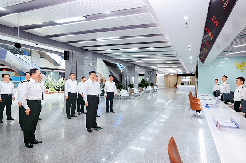 2024年10月15日至16日,中共中央總書記、國家主席、中央軍委主席習近平在福建考察。這是16日上午,習近平在中國(福建)自由貿(mào)易試驗區(qū)廈門片區(qū)考察時,同綜合服務(wù)大廳窗口工作人員親切交流。新華社記者 鞠鵬/攝