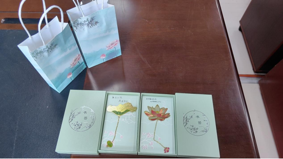 一份廉簽育正氣。書簽配以清新雅致的蓮花圖案,突出彰顯剛正不阿、潔身自好的清廉品格。讓每位員工在書簽上寫下一句廉潔承諾語,夾在筆記本里,可以讓廉政提醒時時常在,于無聲處弘揚清風正氣。