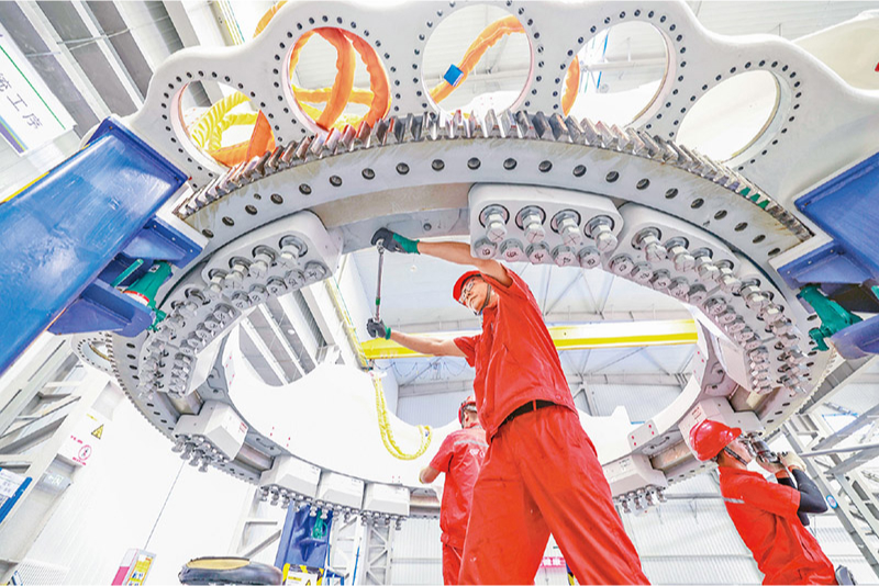 黨的二十屆三中全會強調(diào)要建設(shè)一流產(chǎn)業(yè)技術(shù)工人隊伍。產(chǎn)業(yè)工人是工人階級的主體力量,各級工會要更好團結(jié)動員廣大職工為進一步全面深化改革、推進中國式現(xiàn)代化作貢獻。圖為2024年7月23日,河北省隆化縣一家風電設(shè)備企業(yè)的工人在車間工作。 新華社發(fā) 李秀清/攝